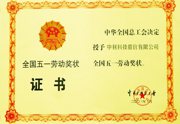 2005年6月,榮獲中華全國總工會頒發的全國五一勞動獎狀